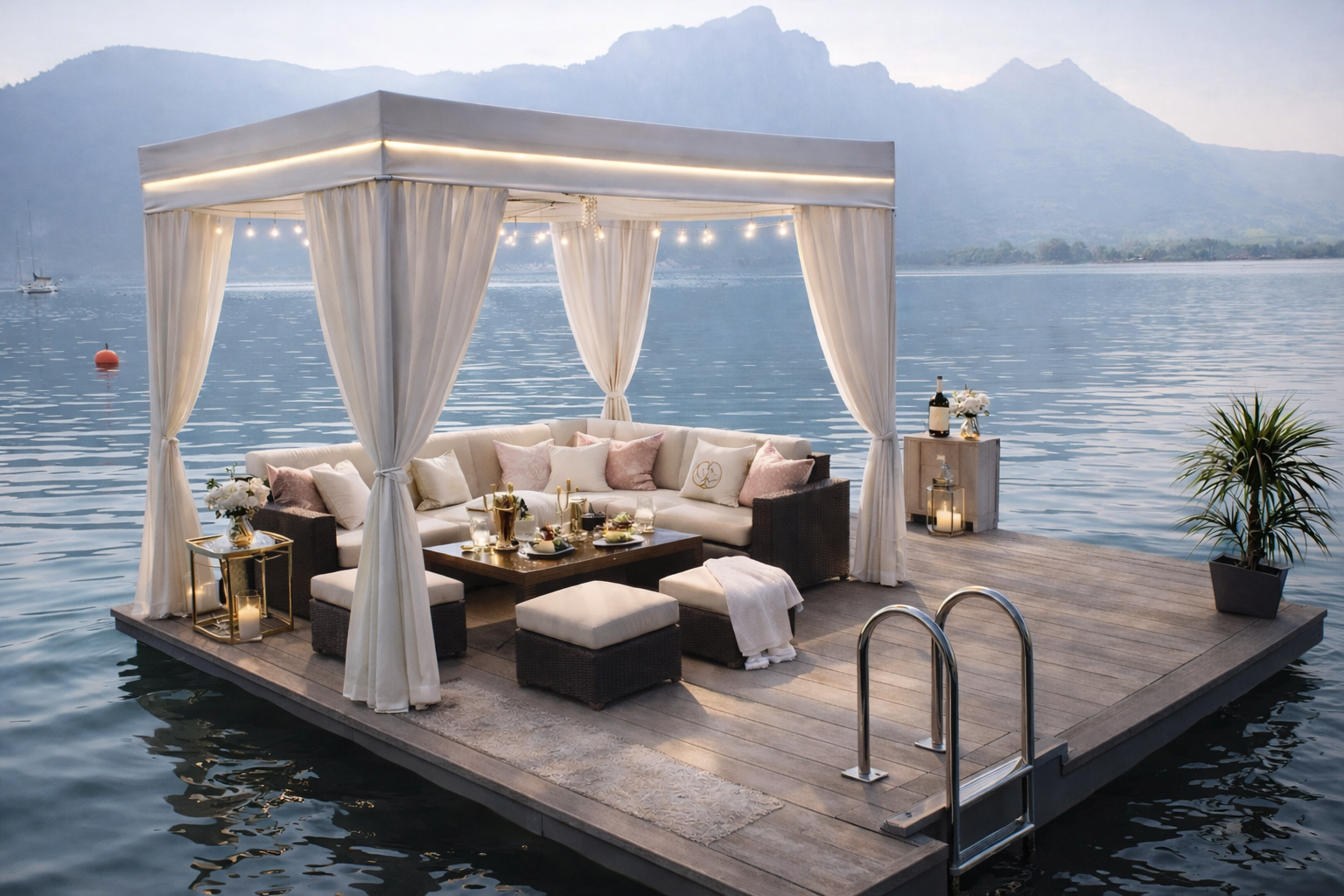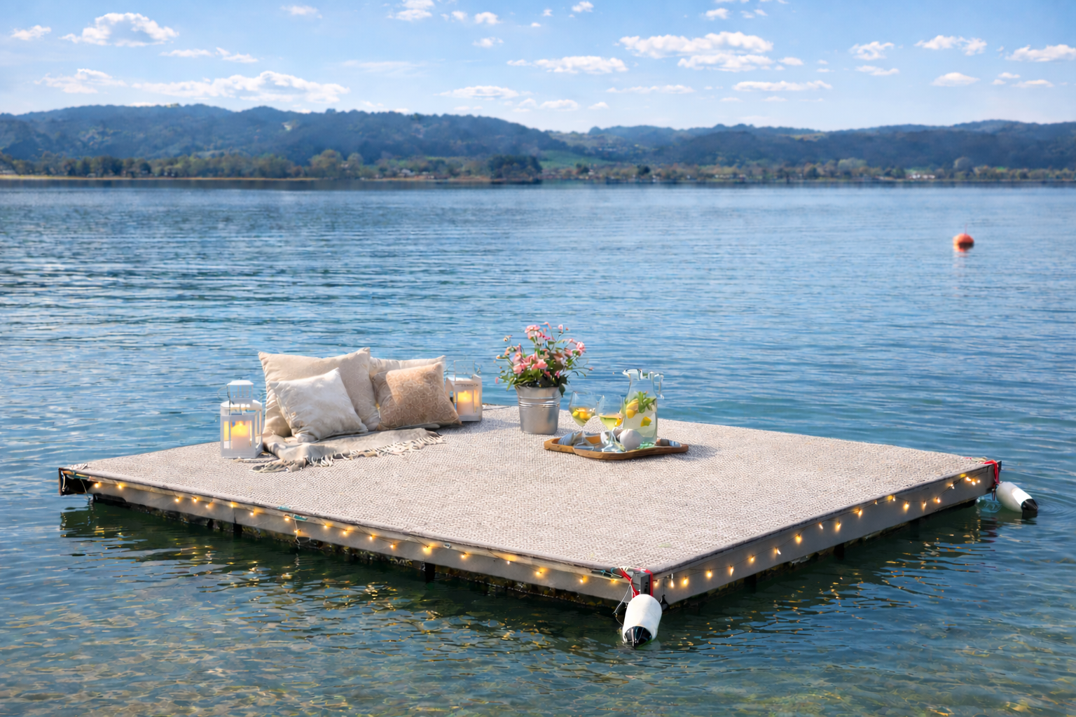 Durch die Kombination dieser Elemente entstehen einzigartige Luxus Schwimm-Inseln, die höchsten Ansprüchen an Design, Komfort und Sicherheit gerecht werden und ein unverwechselbares Highlight auf jedem Gewässer darstellen.
