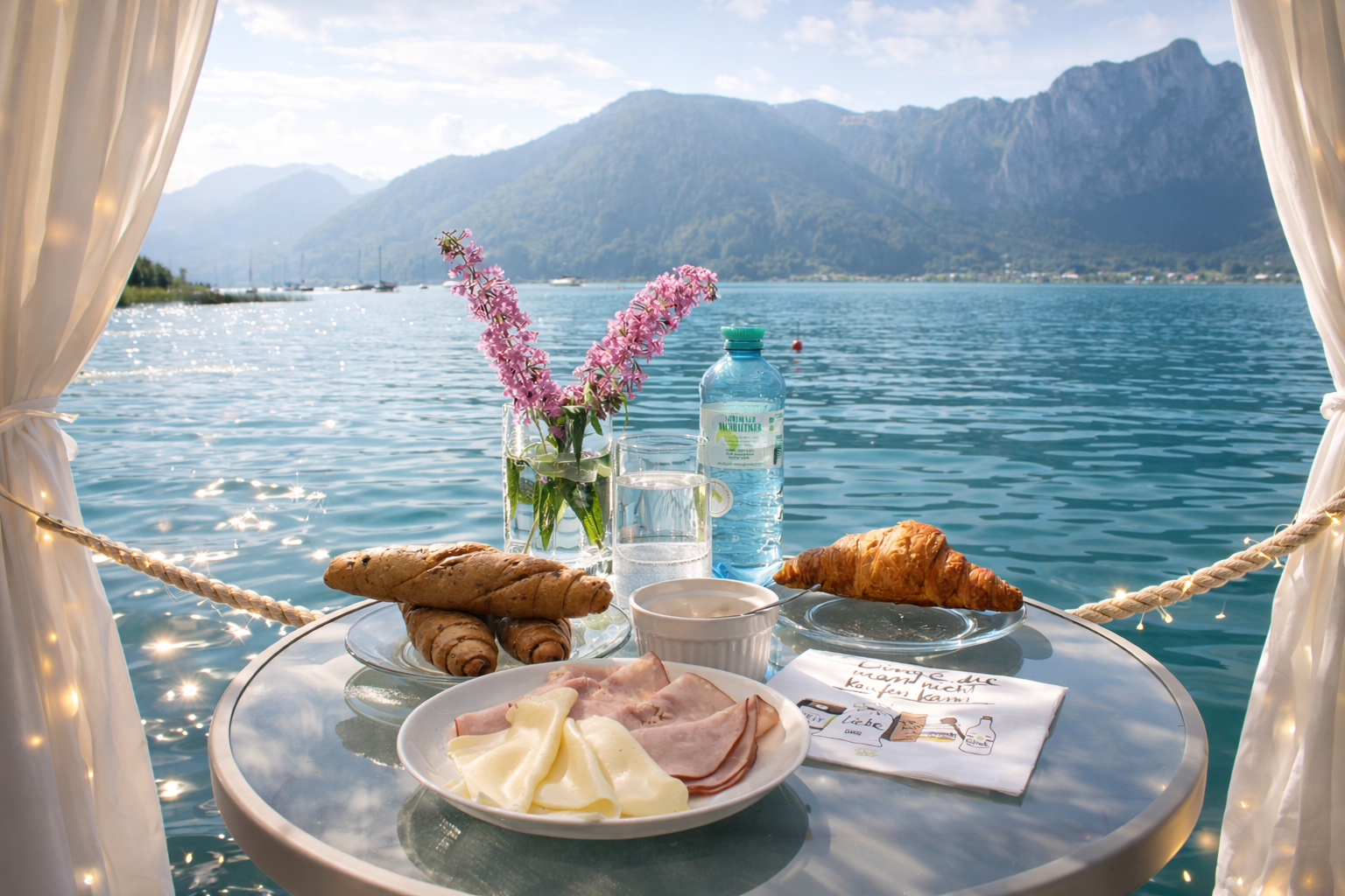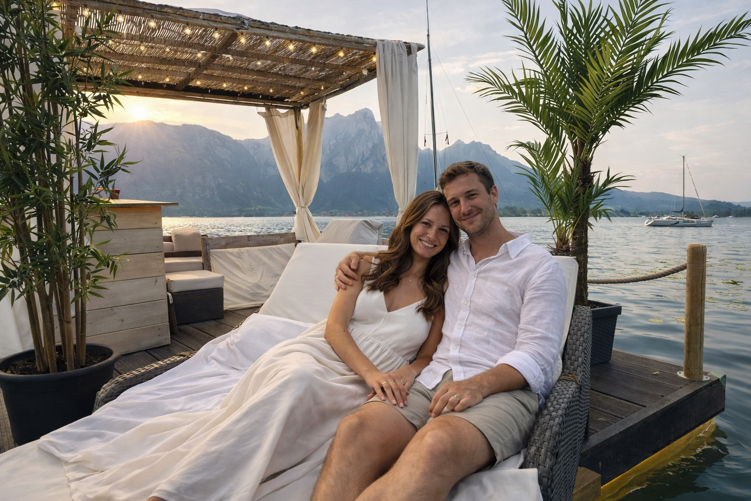 Wie: Teilen Sie uns Ihr Wunschdatum und die Uhrzeit mit, wir holen Sie direkt am Steg ab und bringen Sie zu Ihrer bereits aufgebauten Luxus-Schwimm-Insel.