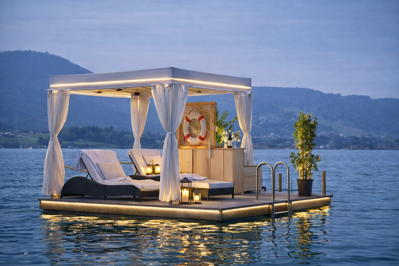 Für ein außergewöhnliches Erlebnis können Sie unsere Luxus-Schwimm-Inseln mit besonderem Service buchen!